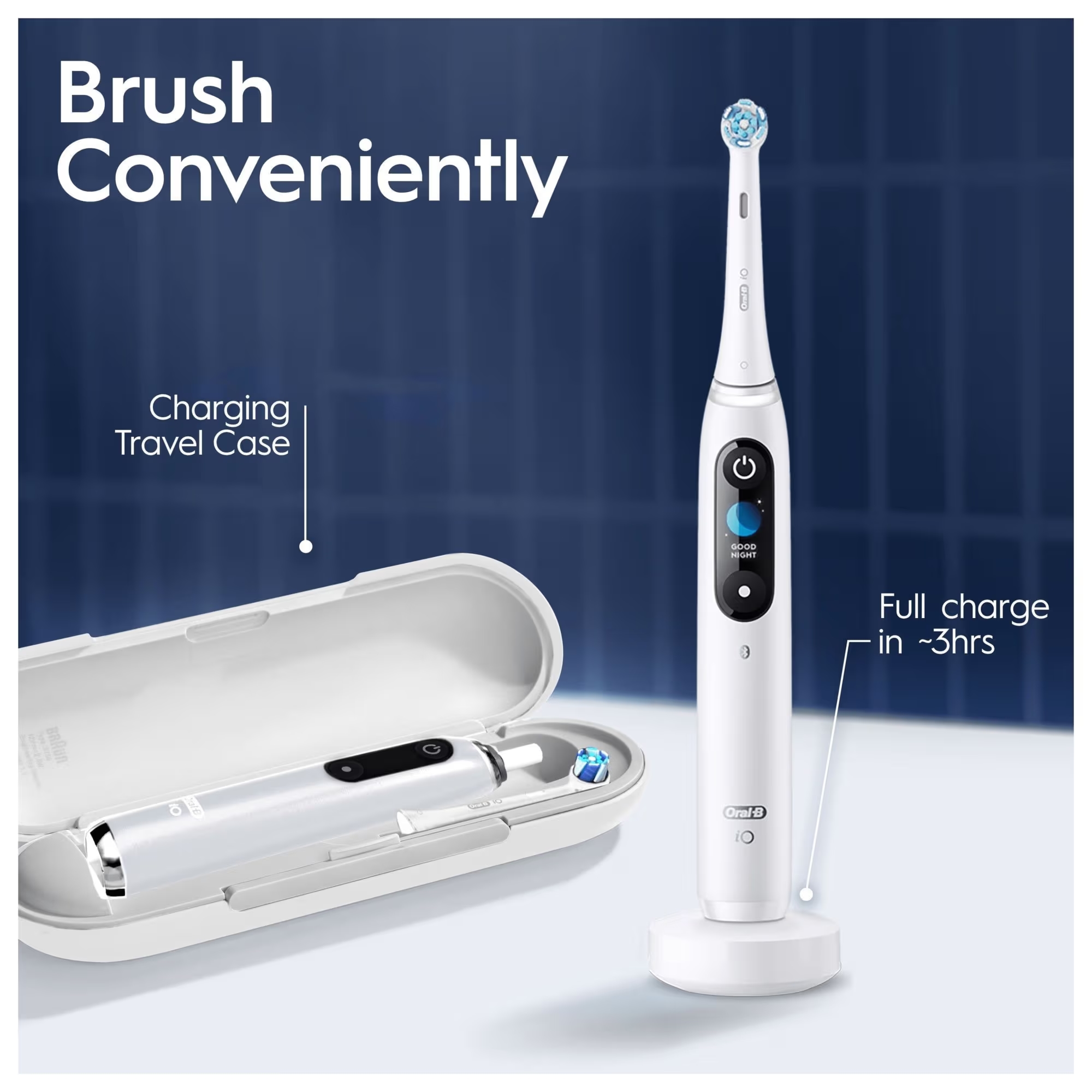 Mukana toimitettu matkakotelo lataa hammasharjasi, kun otat sen mukaan työ- tai lomamatkoille.
