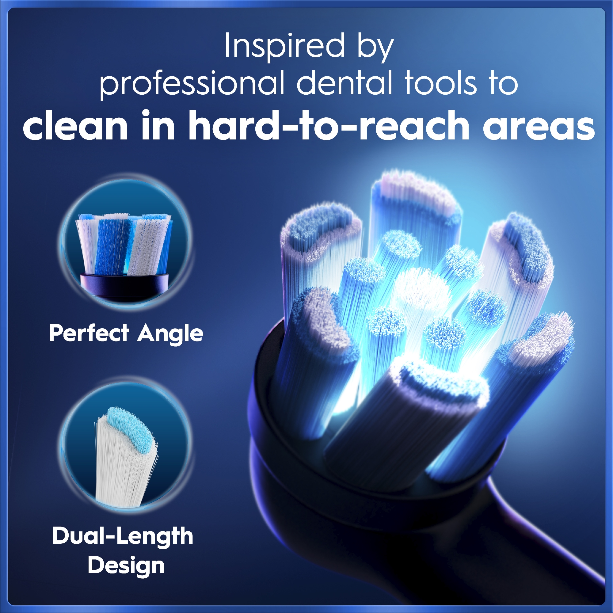 Oral-B iO on Oral-B:n KEHITTYNEIN TEKNOLOGIA, jossa on yksilöllisesti toimivat harjakset ja hammaslääkäreiden innoittama pyöreä harjaspää
