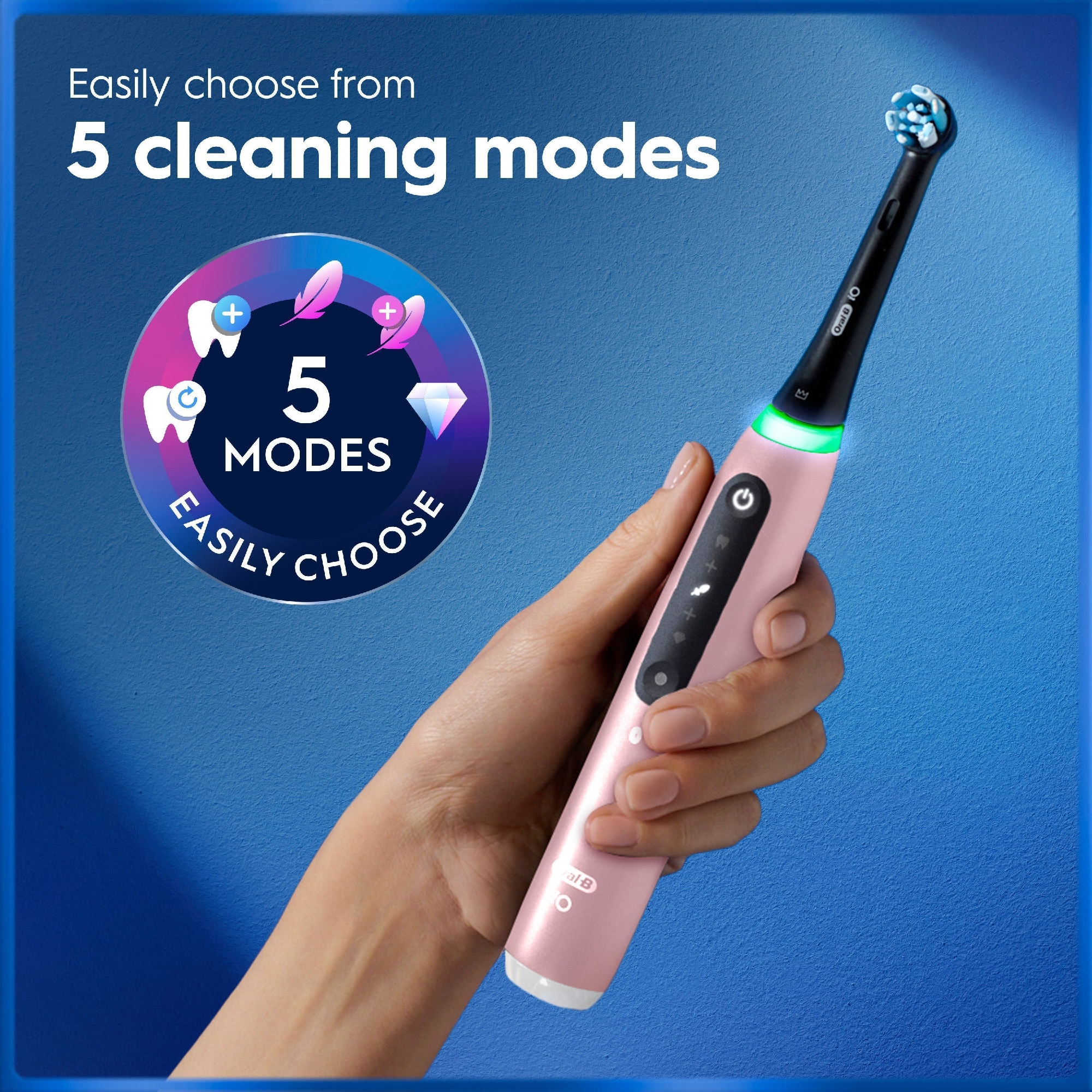 ORAL-B SÄHKÖHAMMASHARJA iO 5s PINK. iO5 -sähköhammasharja hyödyntää Oral-B:n parasta tekniikkaa. Älykäs paineentunnistin auttaa harjaamaan oikealla paineella. Tekoälyavusteinen harjaustunnistin tunnistaa harjaustyylisi ja ohjaa harjaustasi.