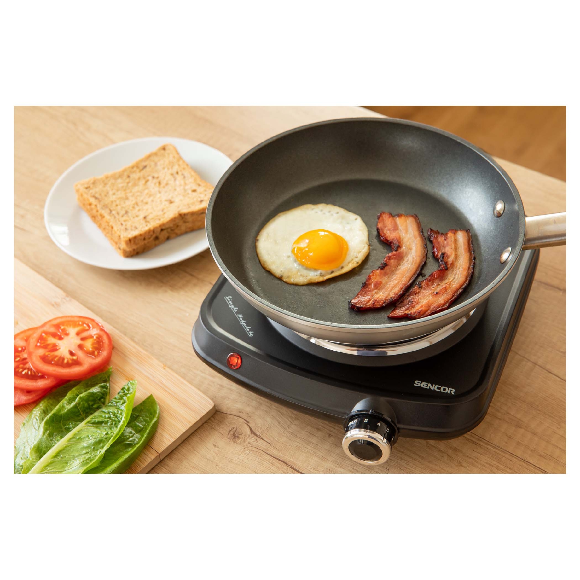 SENCOR SCP1504BK KEITTOLEVY. Säädettävä lämpötilan säätö halutun lämpötilan asettamiseksi. Lämpölevyn halkaisija 18 cm.