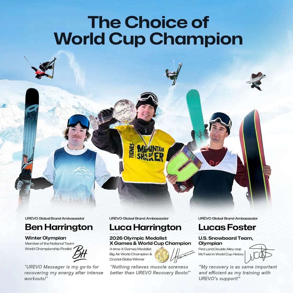 Reisiin asti ulottuvat UREVO-saappaat ovat kooltaan säädettävät ja sopivat näin monenlaisille urheilijoille. Yhteensopivuuden takaamiseksi käyttäjän vähimmäispituus tulisi olla 160 senttimetriä ja enimmäispituus 210 senttimetriä.