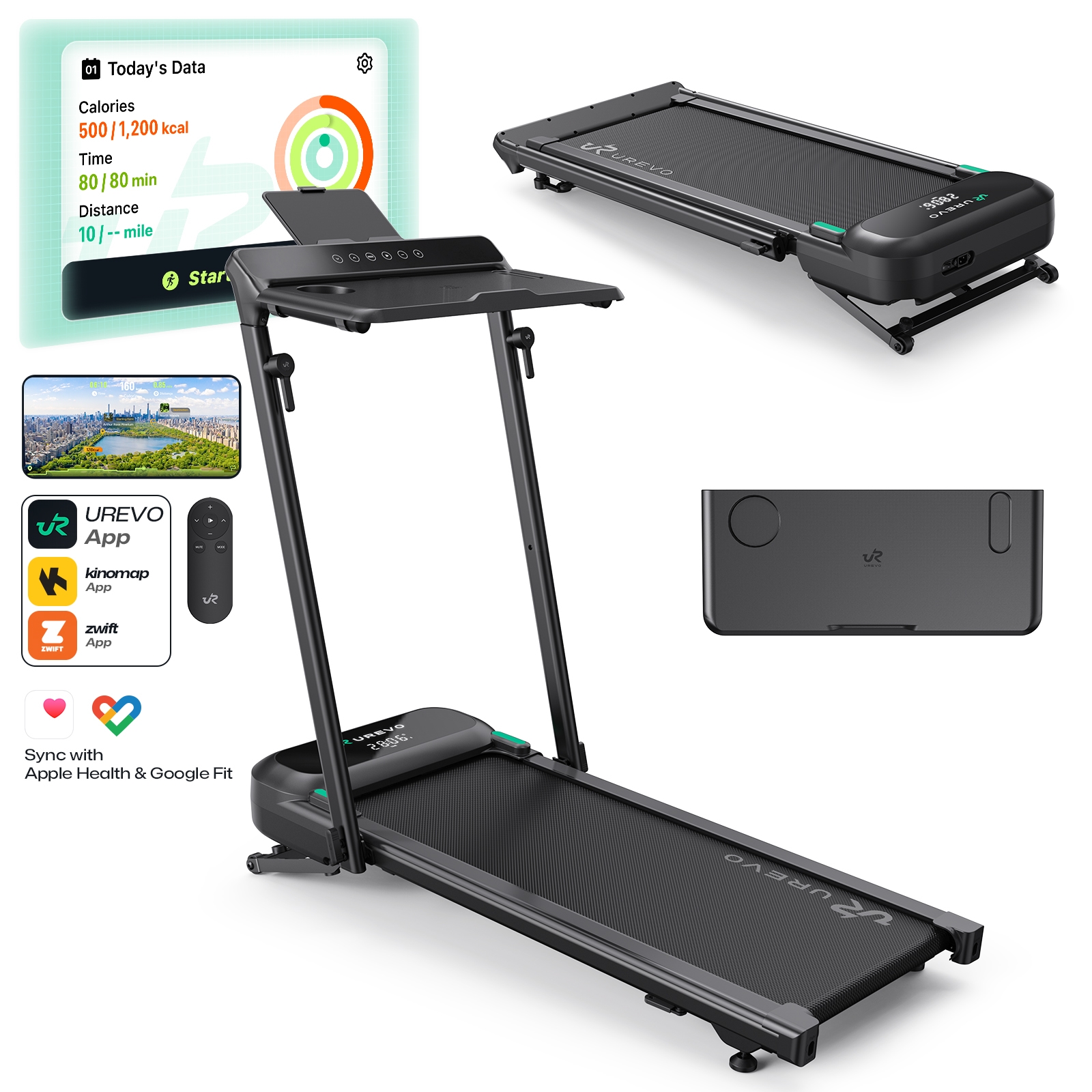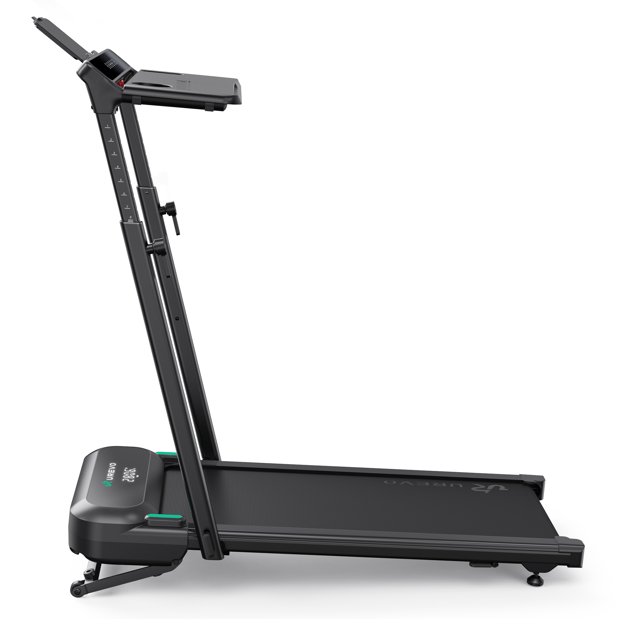 UREVO Foldimix 5L on kompakti, käsituella ja työtasolla varustettu älykäs juoksumatto koti- ja toimistokäyttöön. Helppokäyttöisyytensä ja monipuolisten toimintojensa ansiosta se sopii vaivatta niin kävelyyn kuin juoksuunkin. Juoksumaton kevyt ja matala rakenne sekä kokoon taitettava runko helpottavat laitteen säilytystä. Matossa on kuljetuspyörät siirtämisen helpottamiseksi. Tehokas ja hiljainen moottori on käytössä miellyttävä. Lisäksi juoksumaton älykkäät kuntoilutoiminnot monipuolisella puhelinsovelluksella tekevät liikuntatavoitteiden saavuttamisesta helppoa.